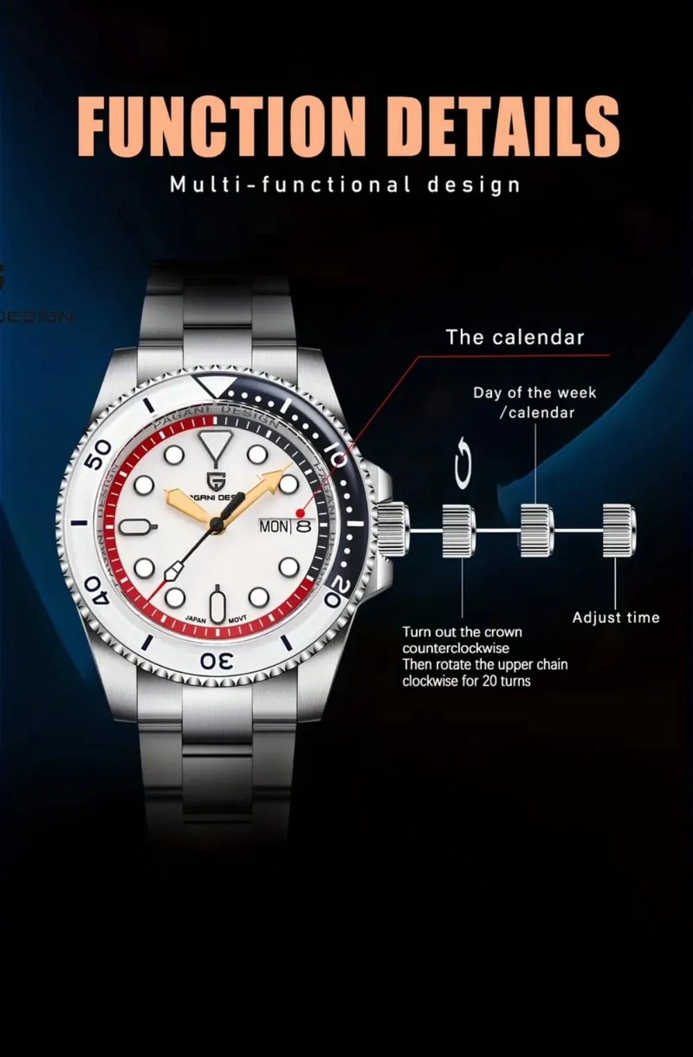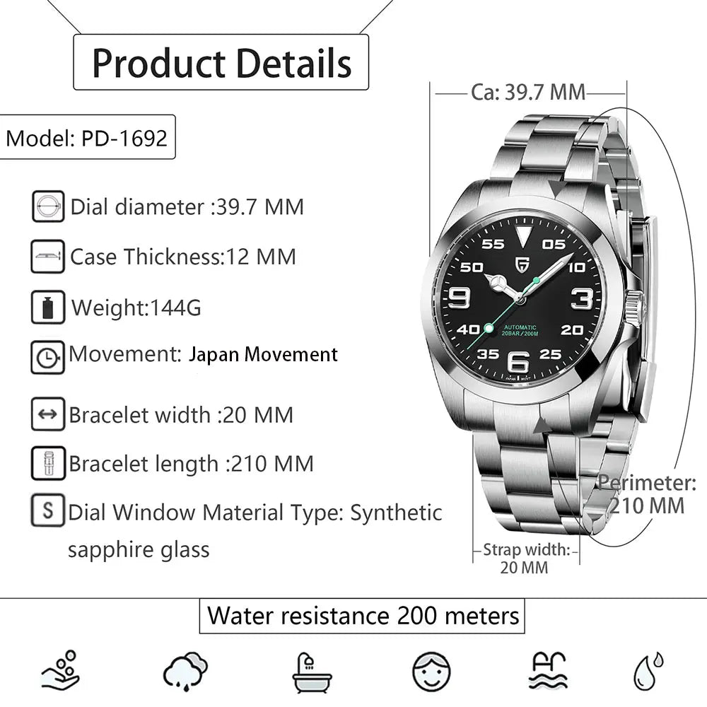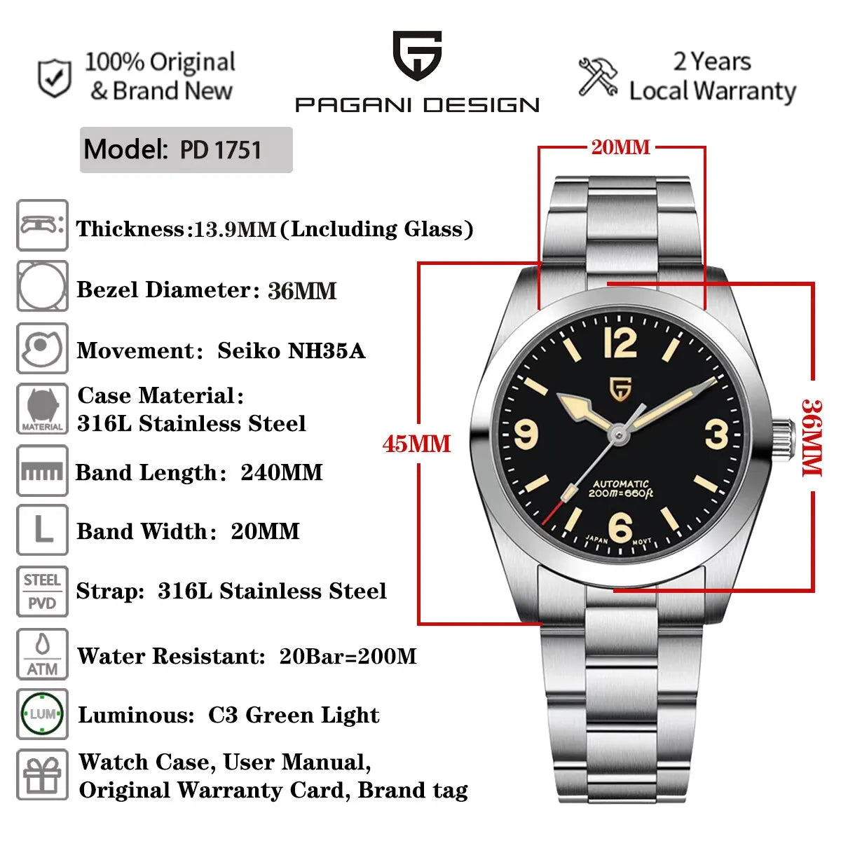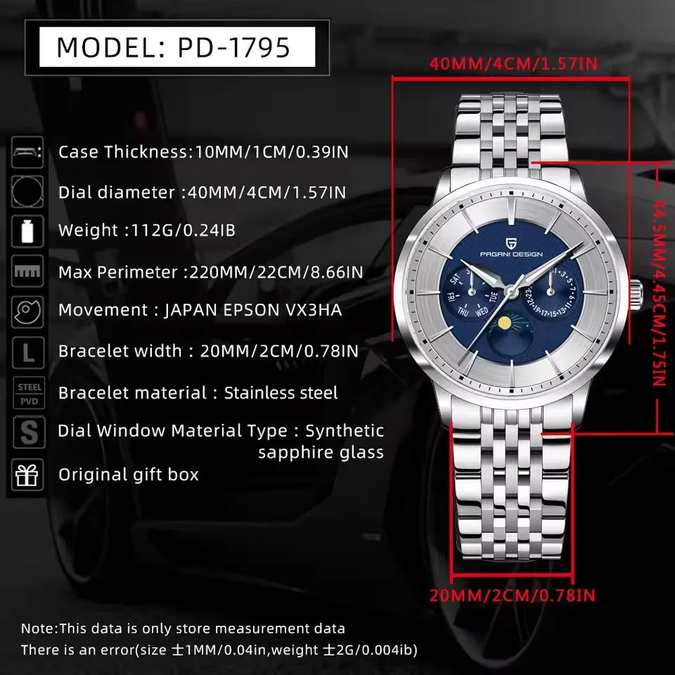 With: 316L solid stainless steel bracelet,