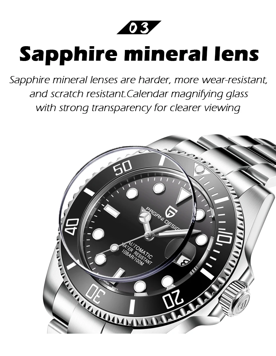 Glass: sapphire crystal glass, Ar coating